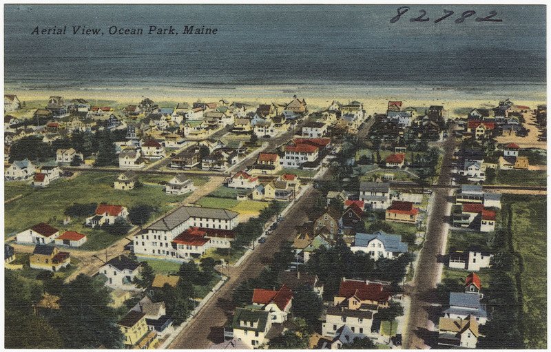 Ocean Park is laid out along a roughly north-south axis, with rail lines marking both ends. The southern edge, on the ocean side, was marked by the famed “Dummy” Railroad. Operating from 1880 to 1923, the Dummy connected Old Orchard, passed through Ocean Park, and ended at Camp Ellis, where the train simply backed up to return to Old Orchard. Today, the most visible trace of the Dummy Railroad is the unusually wide Seaside Avenue, a quiet reminder of the tracks that once ran there.